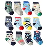 Cottock 12 Pares para Algodón Niños Pequeños Antideslizantes Calcetines, Algodón Calcetines Antideslizantes para Niños (12 pares super estrella, 1-3 años)