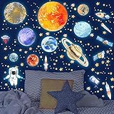 Luminoso Pegatinas de Pared Planetas Astronauta Estrellas Pegatinas Luminoso para Niños Infantil Sistema Solar Fluorescente Adhesivos Decoración para Dormitorio Azul