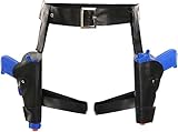 En cuanto al diseño, las pistoleras se presentan con un cinturón negro de piel sintética ajustable, lo que proporciona cierta versatilidad en cuanto a la talla. Este aspecto es positivo, ya que permite adaptar el accesorio a diferentes medidas corporales. Además, las pistolas azules de plástico de gran tamaño añaden un toque llamativo al conjunto, contribuyendo a la autenticidad del disfraz.