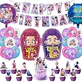 46 Piezas Decoración Cumpleaños Hunters para Fans, Kit de Fiesta Temática Anime con Banner Happy Birthday, Globos de Letras y Topper para Tarta, Decoración Fiesta Infantil