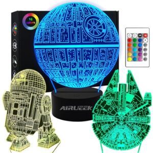 AIRUEEK Star Wars Lampara 3D Luz Nocturna Infantil-16 Colores Cambio & 3 Modelos & 1 Base & 1 Remoto-Millennium R2-D2 StarWars Lámpara de decoración Regalo…