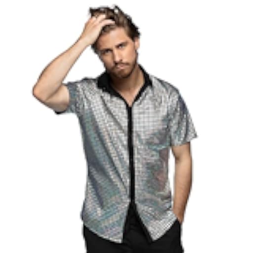 Boland - Disco Shirt, Plata, Disco Diamond Shirt, Camisa de Manga Corta para Hombre, Camisa de Hombre, Top, Camisa de Fiesta para Carnaval o Fiestas de Disfraces
