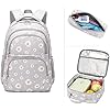 SIVENKE Juego de mochila escolar con estampado de margaritas, bolsa de almuerzo, estuche para lápices, 3 piezas, para adolescentes, niñas, niños, primaria, secundaria, resistente al agua, ligera