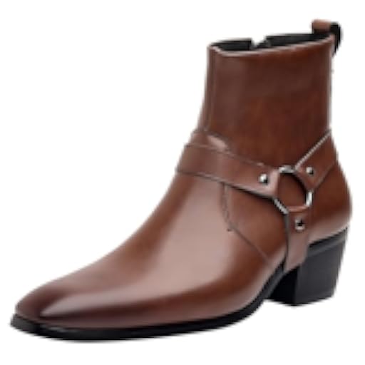 ANUFER Hombre Tacón de Bloque Medio Botines Correas de Remache Punk Cremallera Lateral Botas de Motero Café SN0708263 EU44