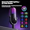 En cuanto a su diseño, el micrófono cuenta con 10 efectos de Iluminación RGB personalizables, lo que añade un toque visual atractivo y dinámico a cualquier configuración. Los controles intuitivos, como el Mute con un Solo Toque y la Perilla de Volumen, facilitan su uso y permiten ajustar rápidamente la configuración sin interrupciones.